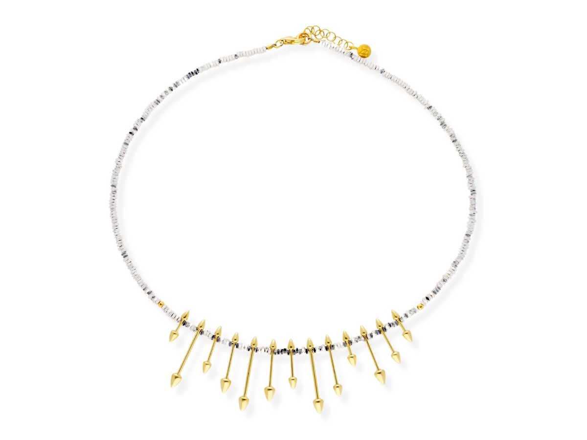 Choker de plata y hematites. ETNA. Sterlingsilber (925), vergoldet mit 18 kt Gelbgold