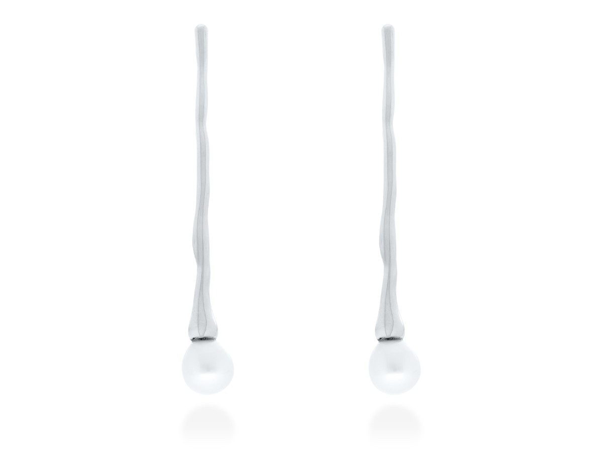 Pendientes de plata con perla largos. Sterlingsilber (925), vergoldet mit 18 kt Gelbgold