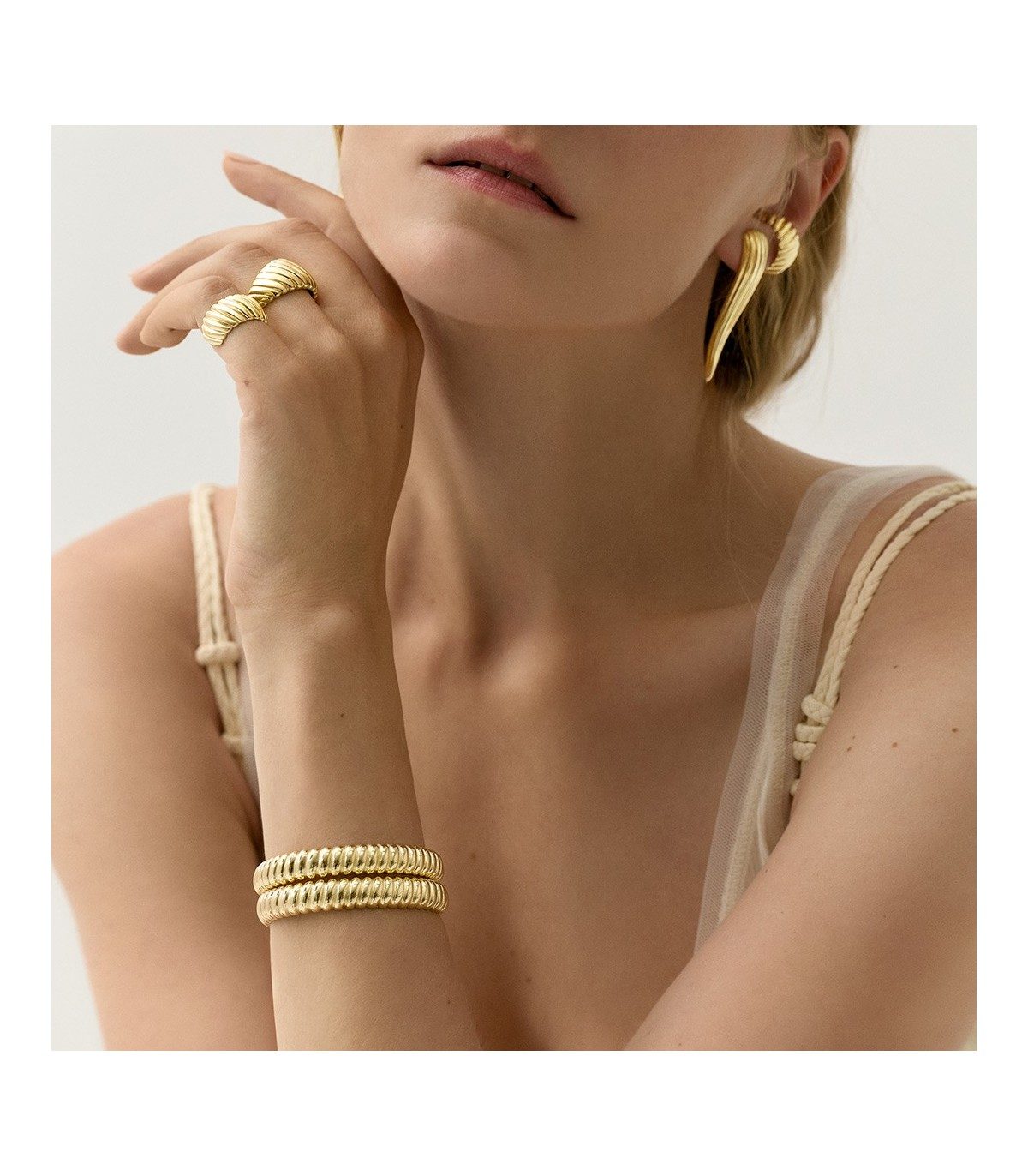 Este chocker dorado de eslabones interpreta esa esencia a través de eslabones texturizados que evocan pliegues, ritmo y movimiento constante.