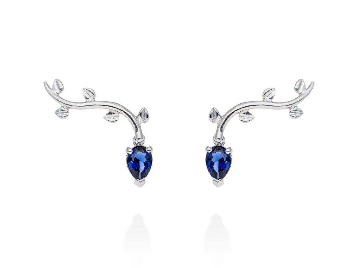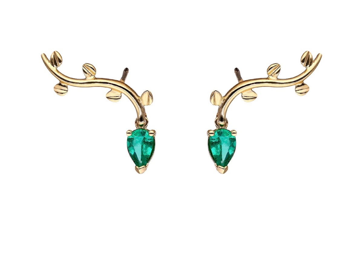 Pendientes trepador con gema de color natural y Oro 18Kt