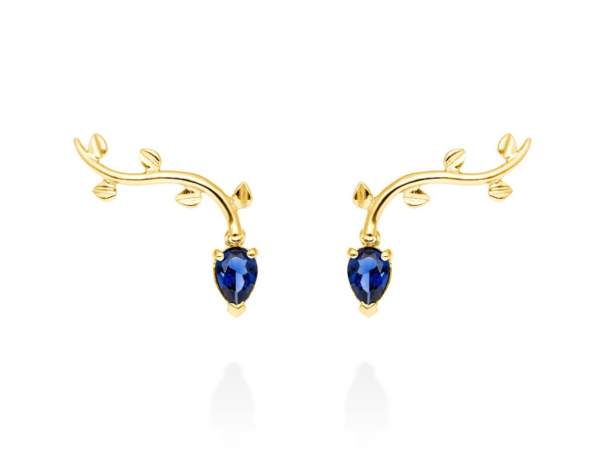 Pendientes trepador con gema de color natural y Oro 18Kt