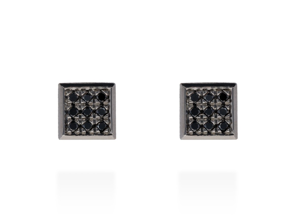 Pendientes cuadrados de plata y diamantes negros