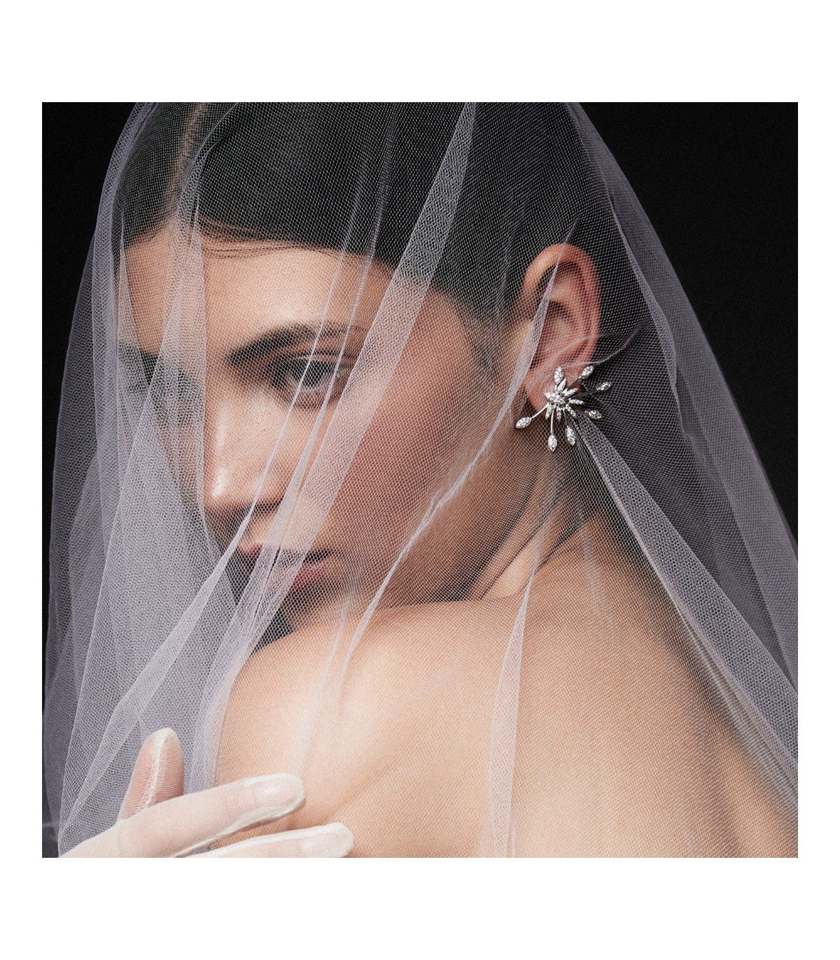Pendientes de plata trepador con circonita blanca. FIREWORK. Plata de primera ley (925)